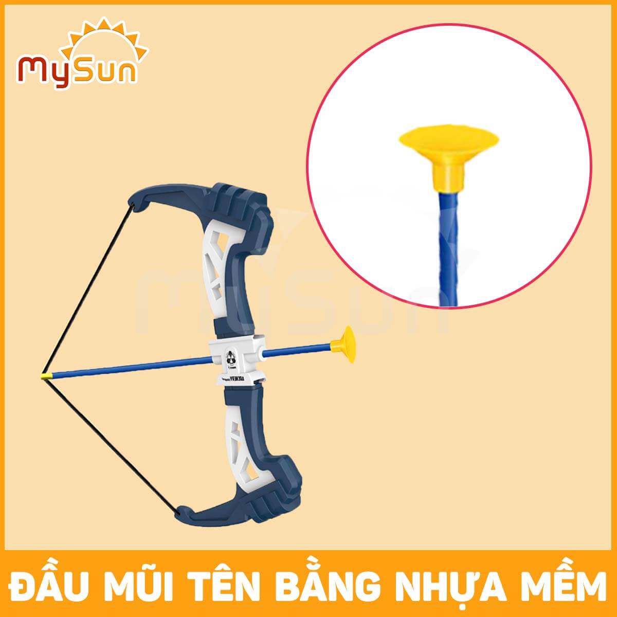 - Cây cung đồ chơi được làm bằng nhựa, mũi tên được thiết kế cốc nhựa hít tường an toàn.